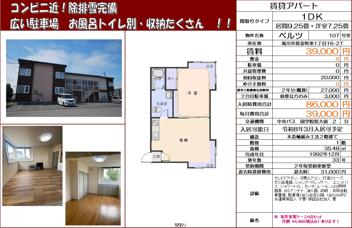 家賃+賃料(1ケ月)無料キャンペーン中!